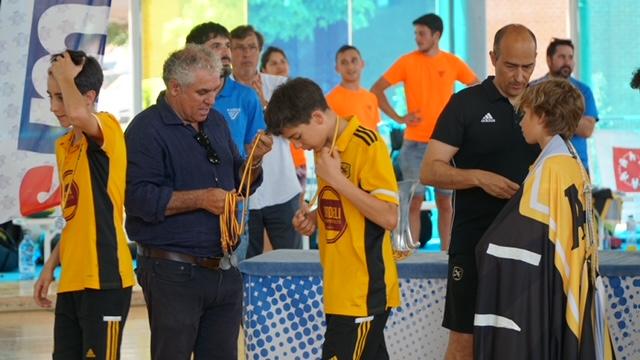 La alcaldesa de Borriana, Maria Josep Safont, y el concejal de Deportes, Vicente Aparisi, entregaron ayer domingo los trofeos a los ganadores y ganadoras del Campeonato de España de Hockey Sala Infantil, masculino y femenino, que se disputó en el pabellón municipal la Bosca desde el jueves 19 hasta el domingo 22 de mayo, en el que participaron los 24 mejores equipos infantiles de hockey sala de la península.