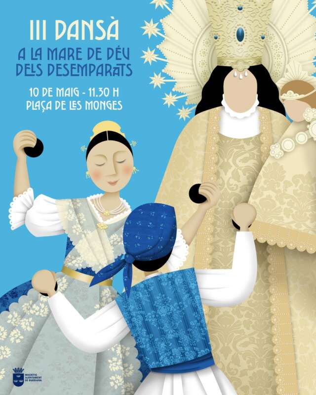 Després de l'èxit de participació i acollida de les edicions anteriors, l'Ajuntament de Burriana, a través de la regidoria de Falles, celebrarà el pròxim diumenge 10 de maig a les 11.30 hores a la Plaça de les Monges la III Dansà a la Mare de Déu dels Desemparats.