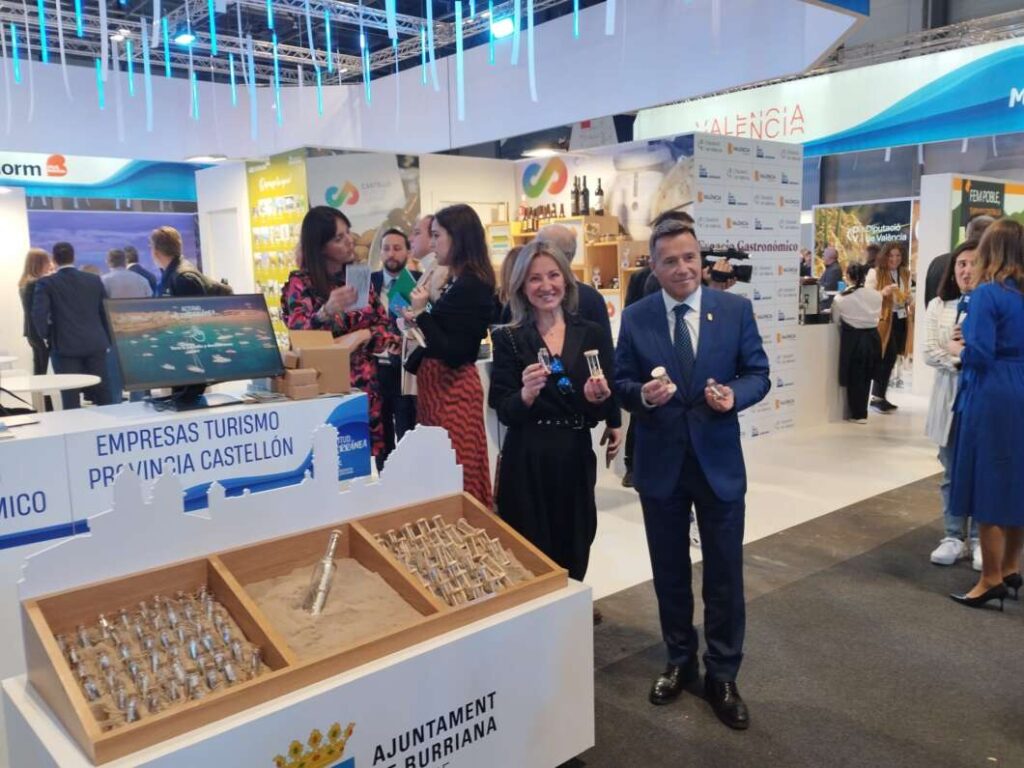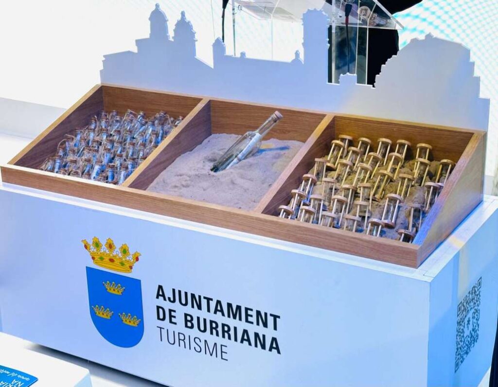 A més, els recipients exposats en estand del municipi contenen arena de la platja, posant de manifest la rellevància i qualitat de les platges de Burriana, així com la seua relació històrica amb la mar mediterrània i el seu port. D'aquesta manera, els assistents que han recollit una botella a Madrid amb un missatge d'un ciutadà tindran un compte arrere d'un any per a visitar la localitat, representada per rellotges d'arena que també s'han repartit durant la presentació. Durant eixe període de 365 dies, els visitants podran presentar-se en l'oficina de Turisme per a recollir un record del municipi, conéixer a la persona protagonista del missatge de la botella i retornar l'arena a la platja de Burriana.