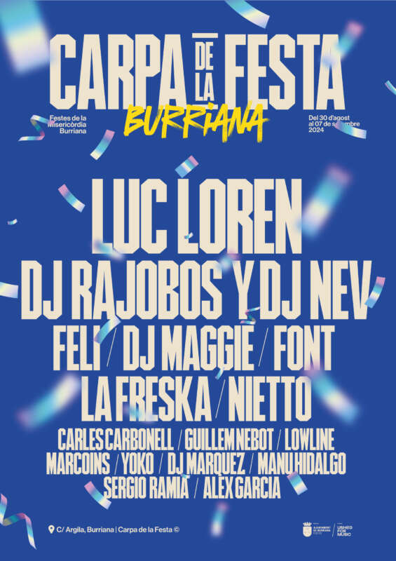 Amb motiu de les festes patronals en honor a la Mare de Déu de la Misericòrdia, el Ajuntament de Burriana, a través de la regidoria de Festes, ha presentat el nou cartell de la Carpa de la Festa. Una iniciativa organitzada pel consistori per a oferir a la joventut una alternativa d'oci baix unes condicions de seguretat adequades durant les Festes de la Misericòrdia 2024.
