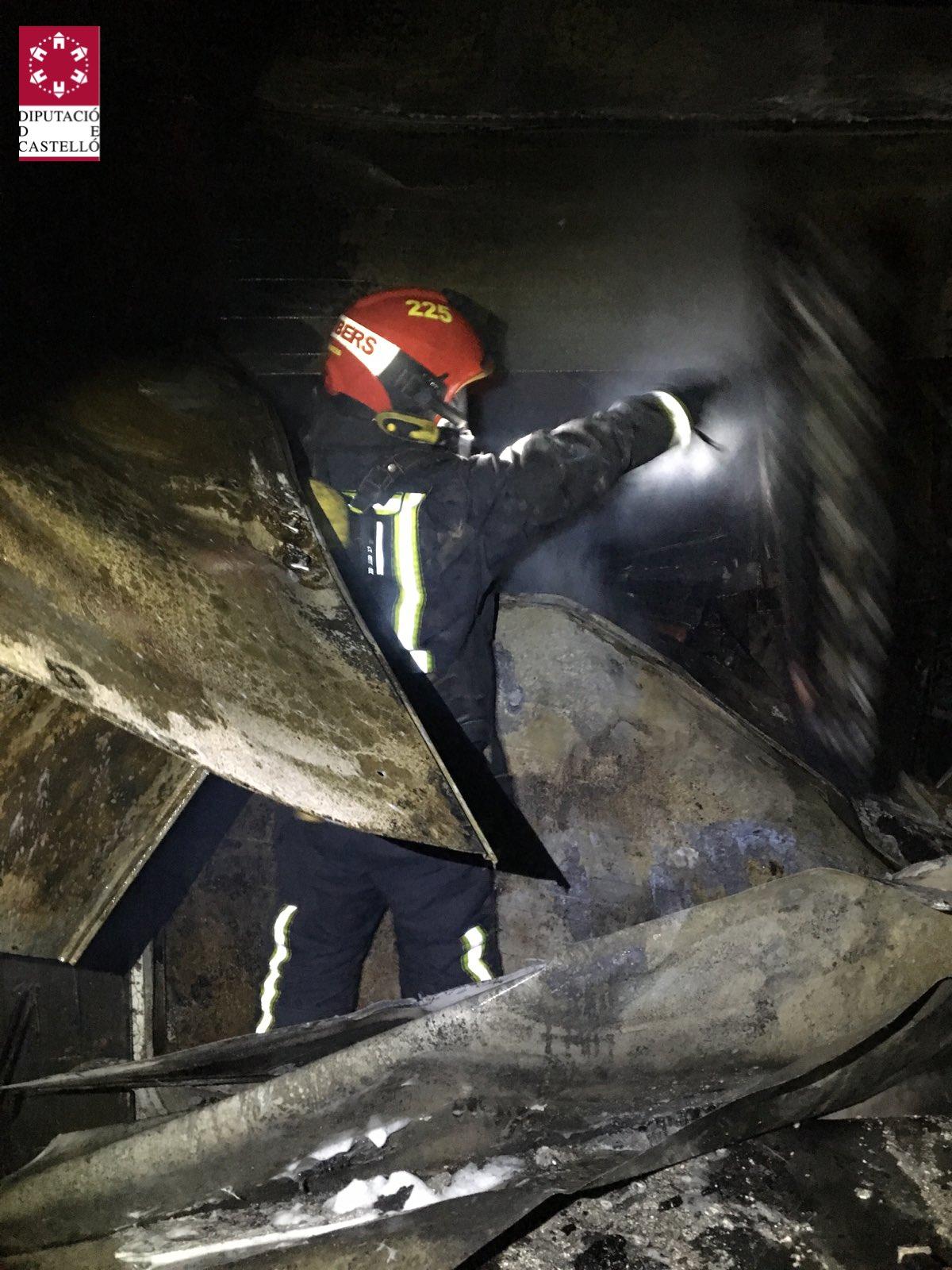 El rápido trabajo de los bomberos ha posibilitado que las empresas colindantes, un taller de fabricación de fallas y una empresa de pinturas, no se vieran afectadas por el incendio que se inició sobre las 2 horas.