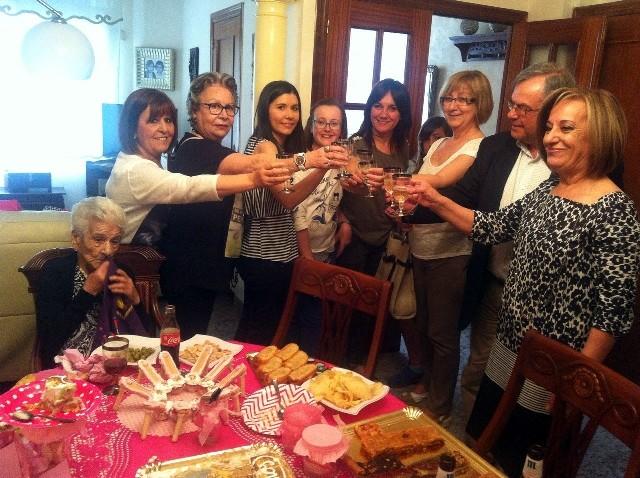 La burrianense Josefa Cano Poveda cumplió 100 años el pasado viernes y recibió un caluroso homenaje de todos sus familiares que le prepararon una fiesta en este dia tan señalado y en la que también estuvieron presentes el alcalde, José Ramón Calpe, y la concejal de Tercera Edad, Mercedes Giménez.