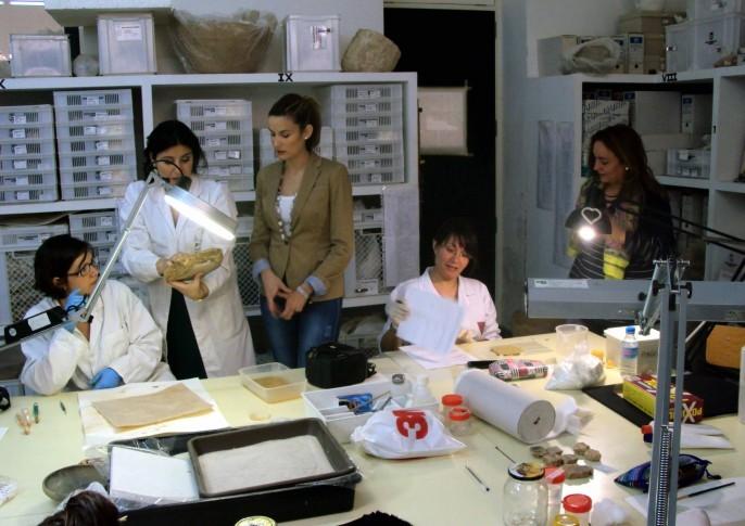 Las concejalas Belén Sierra y Consuelo Suay se acercaron hasta el laboratorio de restauración del museo, donde se impartían las clases, para observar de primera mano el transcurso y el continuo aprendizaje de los alumnos. Éstos han podido complementar su formación al trabajar con restos del yacimiento romano de Sant Gregori.