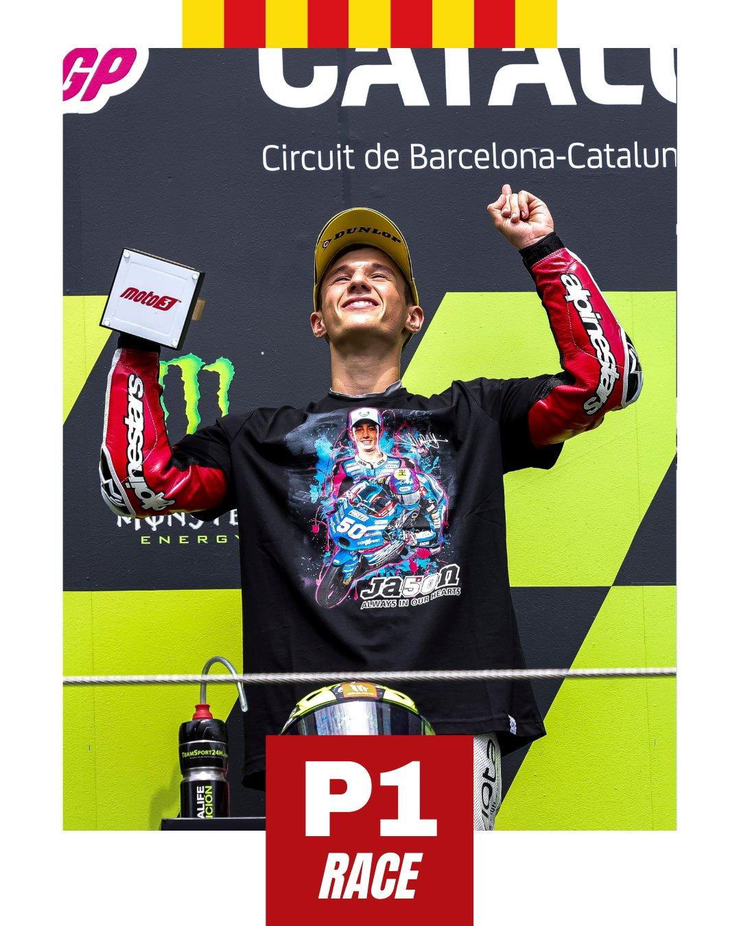 Con todo ello, sólo 18 pilotos consiguieron terminar la carrera en el Circuit de Barcelona-Catalunya, en la que los protagonistas del podio tuvieron un cariñoso recuerdo en sus camisetas para el suizo Jason Dupasquier, fallecido el pasado domingo como consecuencia de las heridas que le provocó un grave accidente durante la Q2 en Mugello.