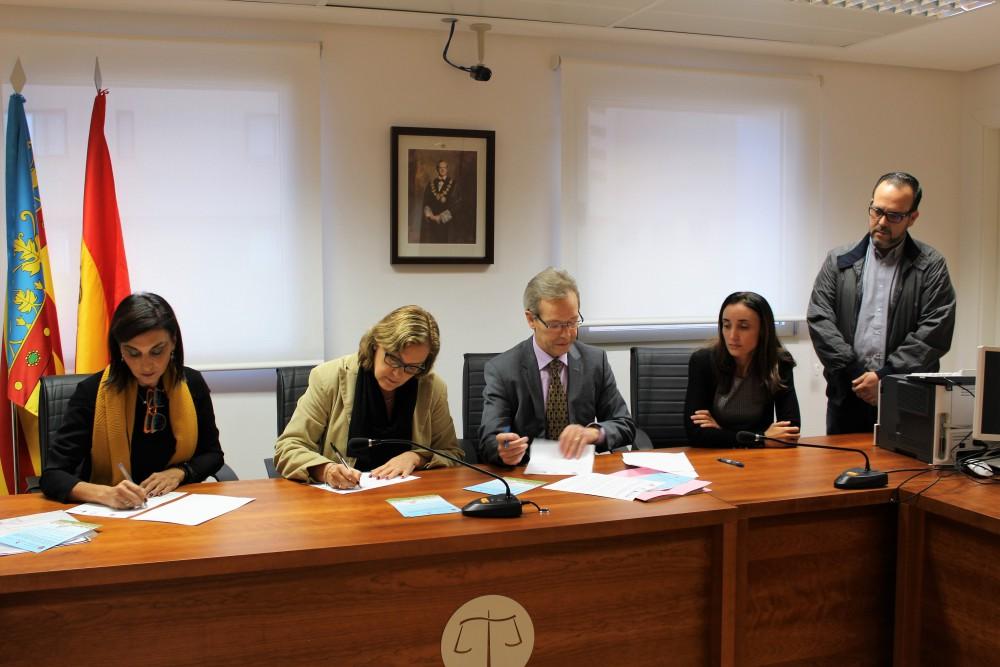Borriana sigue aumentando sus recursos para la defensa del derecho a la vivienda de sus vecinos y vecinas, después de la firma del protocolo de actuación ante situaciones de riesgo de exclusión social detectadas en el curso de procedimientos que comporten la pérdida de la vivienda habitual, que se ha firmado esta misma mañana en los Juzgados del Partido Judicial de Vila-real.