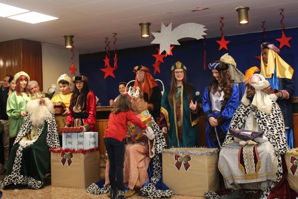 Una vez terminada la cabalgata, los Reyes Magos, han entrado en el Salón de Actos del Centre Paulo Freire para comenzar el reparto personalizado de los regalos a los niños y niñas de la localidad, lo que es toda una tradición.