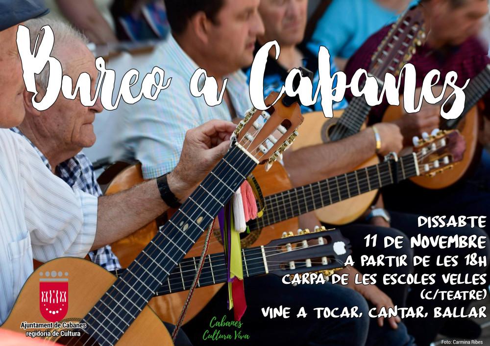 Cabanes celebrarà este dissabte a les 18.00 a la carpa de les Escoles Velles (Carrer del Teatre) el seu primer bureo en anys, on s'ha convocat a tota la gent interessada. Un total de 30 músics tradicionals, cantaors i balladors han confirmat ja l'assistència, on s'espera multiplicar aquesta xifra fins aplegar a un nombrós número.