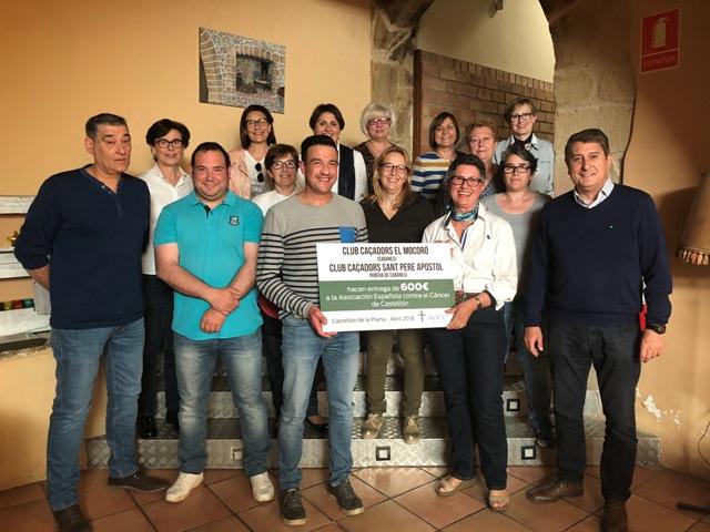 El club de cazadores El Mocoró de Cabanes y el club San Pedro Apóstol de La Ribera de Cabanes hicieron una donación de 600 euros a la AECC de Castellón por medio de la junta local del municipio el pasado 26 de abril, en un acto en el que estuvieron presentes miembros de todas las asociaciones, así como el coordinador provincial, Gonzalo Romero.
