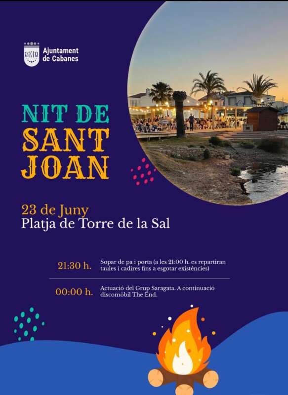 L’Ajuntament de Cabanes ha preparat, un any més, una vetlada molt especial per a celebrar la Nit de Sant Joan, una de les cites més esperades del calendari festiu. La platja de Torre de la Sal serà l’escenari d’una jornada plena de música, tradició i germanor el pròxim diumenge 23 de juny, per donar la benvinguda a l’estiu en un ambient festiu.