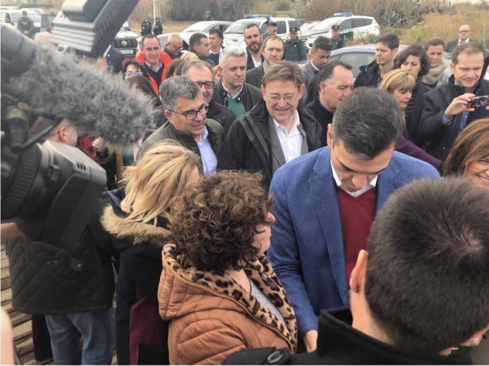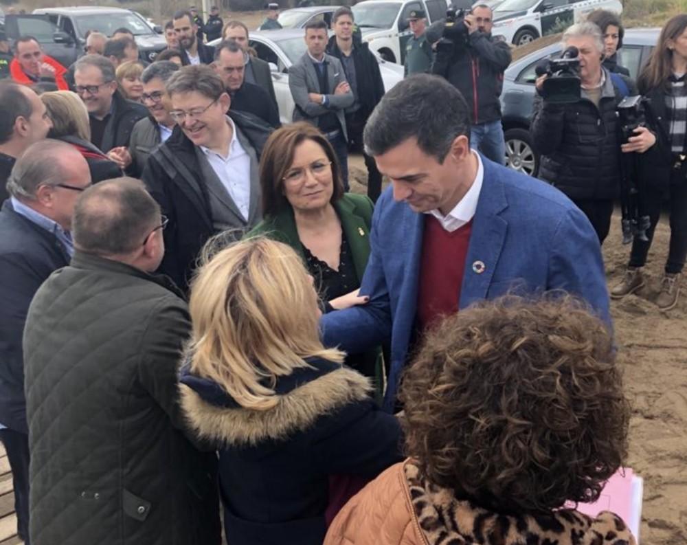 L'alcaldessa de Cabanes, Virgínia Martí, s'ha desplaçat aquest matí a Benicarló per a acompanyar en la visita del president del Govern, Pedro Sánchez, que s'ha interessat pels danys que el temporal Gloria ha causat en la costa castellonenca.