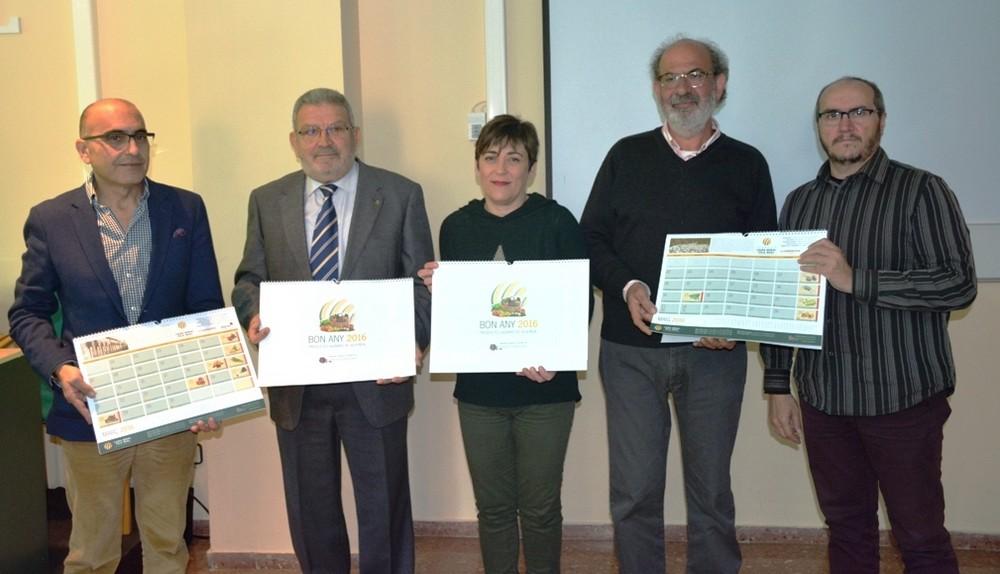 El presidente de Caixa Rural Vila-real y de su Fundación, Enric Portalés, ha presentado el Calendario Solidario 2016, que en esta edición será a beneficio de la Fundación Primavera. En esta ocasión el almanaque hace referencia a los productos agrarios típicos de la población. En el acto de presentación también han participado el concejal de Normalización Lingüística del Ayuntamiento de Vila-real, Pascual Batalla; el autor de los textos del calendario, Pasqual Broch; y la gerente de la Fundación Primavera, Salomé Castelló.