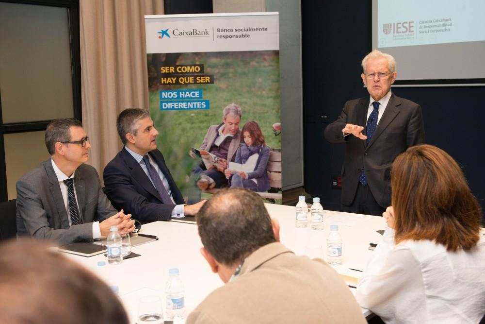 Gustavo López Bernal, Director de CaixaBank Banca Privada y Premier en la Comunitat Valenciana ha presentado el acto, al que han asistido 20 clientes del segmento de banca privada. El evento, celebrado en el centro de Banca Privada de CaixaBank de Valencia, ubicado en la calle Pintor Sorolla número 2, ha contado con la presencia de Jordi Casajoana, director de Colectivos de Valor y Filantropía de CaixaBank; Ramón Fuentes, Director de Servicios de Responsabilidad Corporativa; y Antonio Argandoña, profesor emérito de Economía y colaborador de la Cátedra CaixaBank de RSC de IESE.