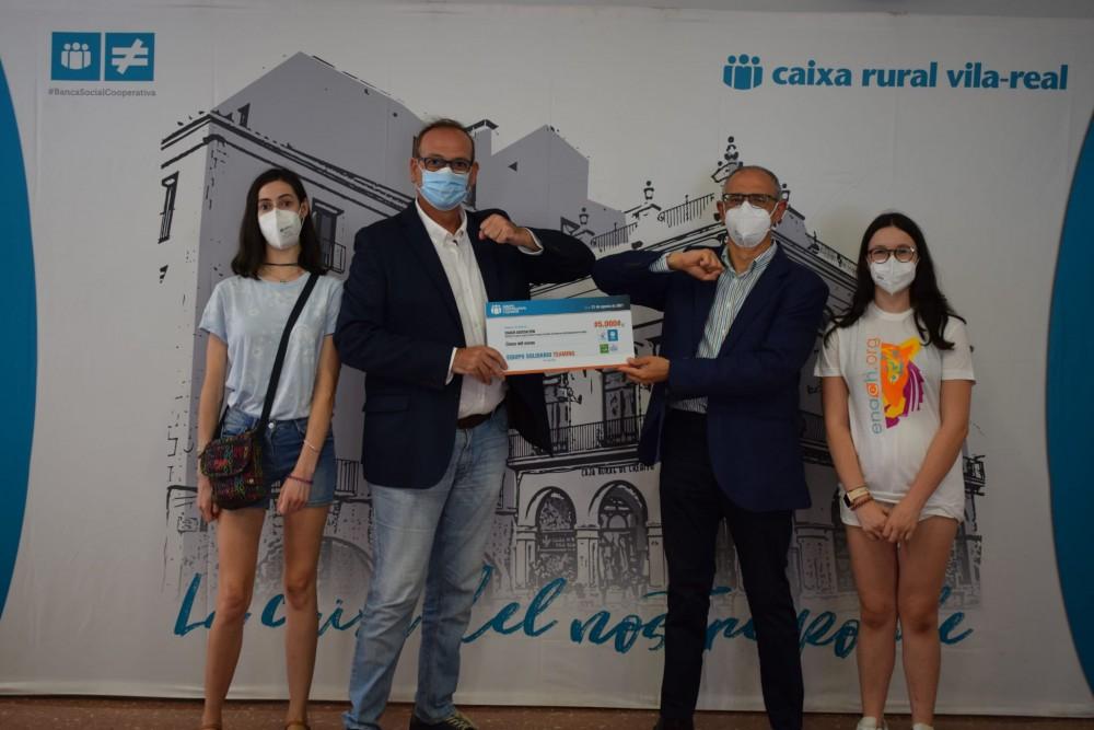 El presidente de Enach Asociación, Antonio López Galán, recibió el cheque de manos del director general de Caixa Rural Vila-real, Manuel Cubertorer, en el trancurso de una reunión celebrada en la sede de la entidad de crédito de Vila-real.