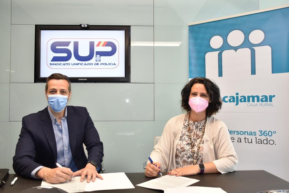 El Sindicato Unificado de Policía (SUP) y la banca cooperativa Cajamar han firmado un convenio de colaboración para que sus 25.000 afiliados en España puedan acceder a la oferta de productos y servicios de la entidad financiera en condiciones especiales.