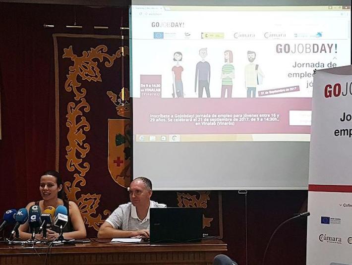 Un completo programa para aprender de la experiencia de casos de éxito y de expertos en inserción laboral de jóvenes, con la posibilidad de hacer 'networking' con empresas. Así han presentado esta mañana Javier Valls, Secretario Adjunto en Funciones de la Cámara de Comercio de Castellón y María Cano, concejala de Educación del Ayuntamiento de Vinaròs, la primera edición de Gojobday!, feria de empleo para jóvenes que acogerá el Centro de Conocimiento Vinalab el jueves 21 de septiembre, organizada por la Cámara de Comercio y la colaboración del Ayuntamiento de Vinaròs. La jornada esta cofinanciada por el Fondo Social Europeo, enmarcado dentro del Programa Operativo de Empleo Juvenil 2014-2020(POEJ).