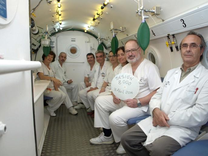 La Unidad de Terapéutica Hiperbárica (UTH) del Hospital Universitari General de Castelló (HUGCS) ha realizado su sesión número 8.000 desde su apertura en el año 2002. El equipo de la Cámara Hiperbárica ha atendido en estos doce años de funcionamiento a más de 2.500 pacientes y ha aplicado 48.500 tratamientos, mejorando la calidad de vida de pacientes que están sometiendo a tratamientos oncológicos como la radioterapia o evitando secuelas neurológicas en los accidentes de los buceadores, entre otras patologías.
