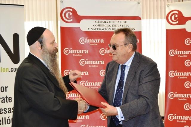 El Rabino Meyers, de Amberes, y el secretario general de la Cámara, Carlos Fabra, suscriben un convenio de colaboración por el que la entidad castellonense se encargará de guiar y asesorar a empresas en el proceso de calificación y obtención de sello ‘kosher’.