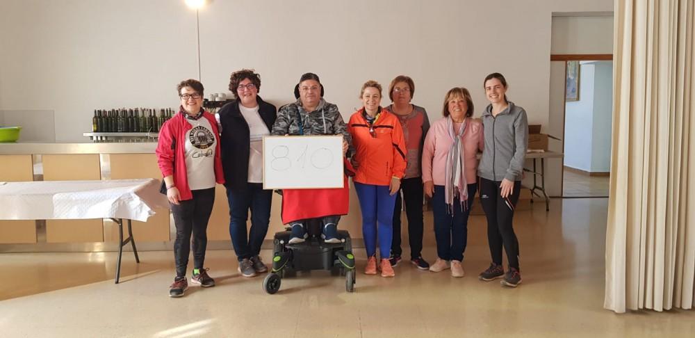 Unas 150 personas participaron ayer domingo en la Caminata Solidaria Día de la Mujer que organizaron las amas de casa de Cabanes. 810 euros es la cantidad que consiguieron recaudar en la jornada, cantidad que se destinará a la Asociación de Enfermos de Patologías Mitocondriales (AEPMI). La actividad, que se desarrolló en un clima de hermandad y armonía, contó con la colaboración del Ayuntamiento de Cabanes.