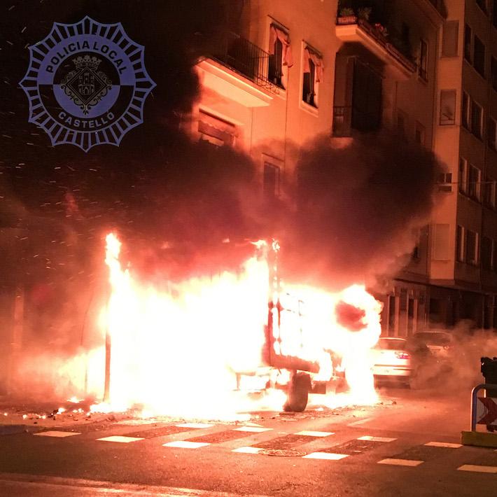 La Policía Local de Castellón y un retén de Bomberos Municipales han intervenido esta madrugada en la calle Císcar debido a un aparatoso incendio producido en un camión de la marca Iveco que se encontraba estacionado cerca del cruce con la Avenida del Mar. Los hechos se han producido sobre las 05:20 de esta mañana cuando la Sala Municipal de Seguridad y Emergencias 092 ha recibido las llamadas de varios vecinos que informaban que al inicio de la calle Císcar había un camión envuelto en llamas. Inmediatamente se ha desplazado hasta el lugar del incendio una patrulla de la Policía Local de Castellón, cuyos agentes, al acercarse por la Avenida del Mar han observado una gran columna de humo negro por lo que han solicitado con urgencia la presencia de los servicios de extinción de incendios para apagar las llamas.