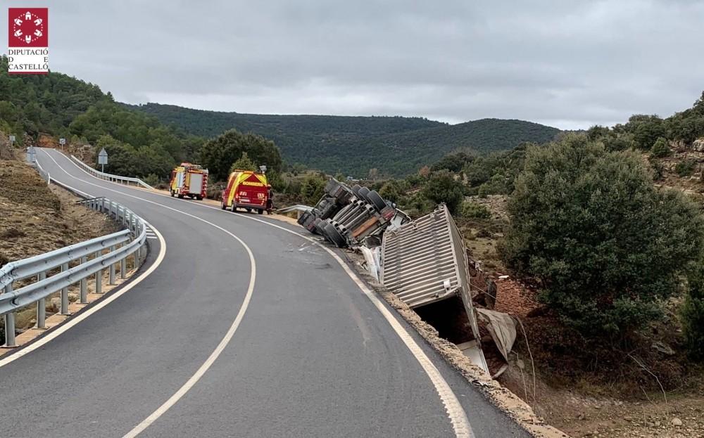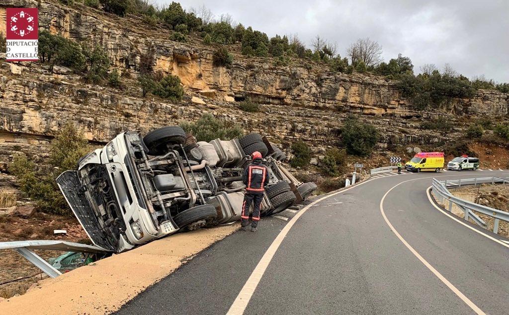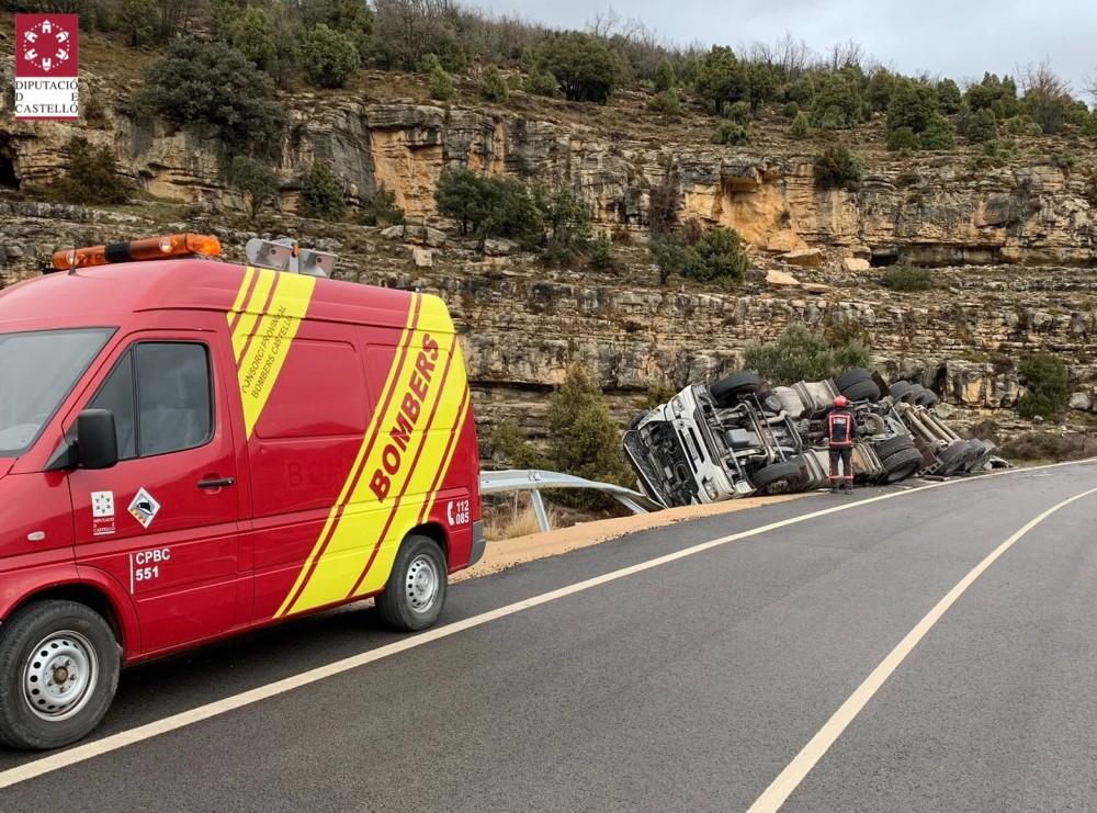 Un camión vuelca en la CV-12 entre Morella y Ares