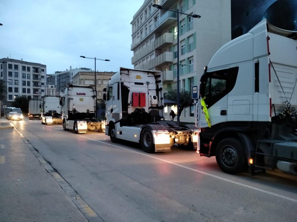 Los camioneros 'ocupan' las calles de Vinaròs para reivindicar la huelga de transportistas