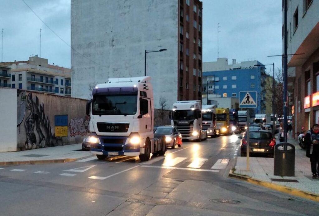A últimas de esta tarde una treintena de camiones participantes en una marcha lenta se internaron por las calles de Vinaròs.