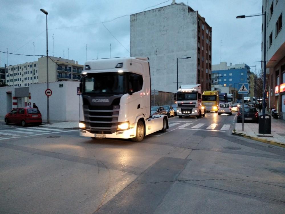 Los transportistas, haciendo sonar las bocinas, entraron por la avenida Castellón y continuaron por Pablo Ruiz Picasso, callo Soro, plaza San Esteban y avenida Libertad.