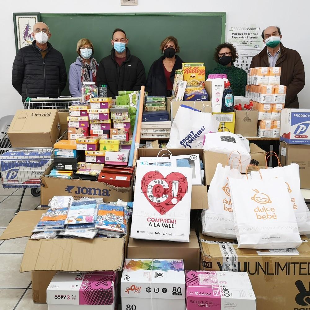En la entrega de los productos (textil, calzado, alimentos, material de limpieza y de higiene personal, etc) han estado presentes la presidenta de Jocomprealavall, Eva Botías; el director de Cáritas, Pasqual Andrés; el concejal de Comercio, Jorge García; y la presidenta de Caixa Rural La Vall San Isidro, Lourdes Falcó. En la iniciativa también ha colaborado la Caixa Sant Vicent, aunque su representante no ha podido asistir.