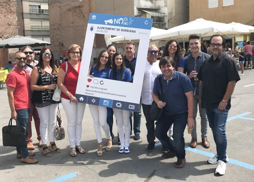 l'Agència d'Igualtat per a arreplegar l'obsequi en forma de 'portatot' en el qual també es pot llegir el lema 'No és No'. A més, la mateixa regidoria d'Igualtat ha elaborat un photocall mòbil que simula una publicació de fotos en xarxes socials perquè tot aquell que vulga sumar-se a la campanya pose per a la foto i ajude a estendre el missatge de conscienciació contra els abusos i actituds sexistes. I en el mateix carrer Major, al costat de la plaça Major, també s'ha instal·lat una gran pancarta que recorda que “Per unes festes lliures de violència sexista.”. I finalment, la mateixa regidora, Maria Romero, ha explicat que “hem volgut incloure o implementar dins de la mateixa campanya altres iniciatives que, encara que menys vistoses, creiem que són claus per a l'èxit en l'objectiu de conscienciar i reduir aquest tipus d'actituds, així que, per exemple, tota la música que sonarà en la megafonia dels recintes del Pla o la Plaça Major estarà supervisada amb anterioritat per a evitar que es reproduïsquen cançons amb contingut sexista o que inciten a aquestes actituds”. A més, també s'ha fet arribar la informació als grups musicals que actuaran durant les festes en els diferents punts habilitats per a concerts, perquè “es facen ressò en directe i recorden als i les assistents la posada en marxa de la campanya i com és en eixe tipus d'actes o esdeveniments on cal transmetre de forma directa el missatge perquè arribe de forma més contundent i ho faça a aquelles persones joves cap a qui va dirigida, especialment, aquesta primera Campanya de Prevenció Contra els Abusos i Actituds Sexistes”, com ha resolt Romero.