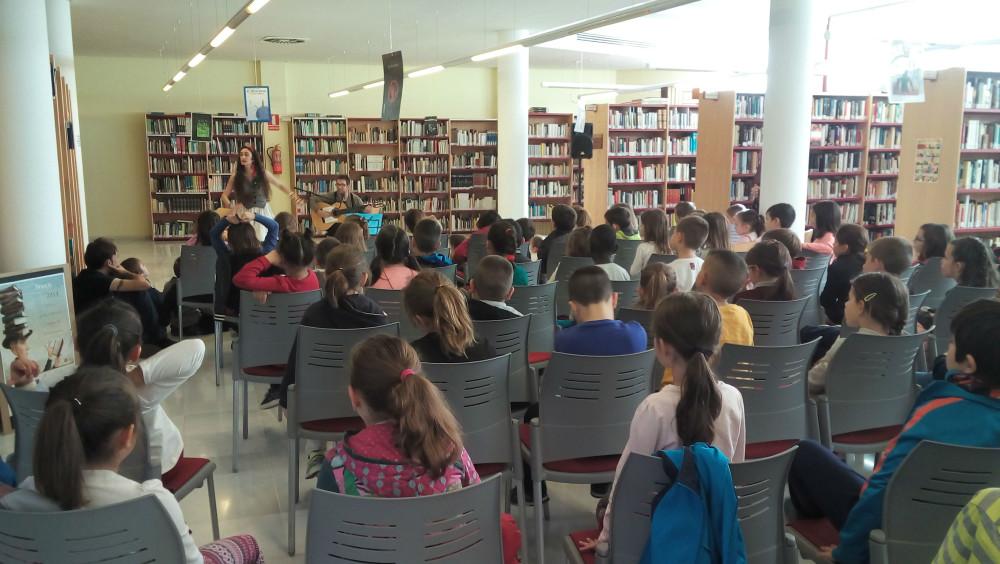 Els alumnes de primària del CEIP Juan Carlos I van visitar la Biblioteca Pública per a assistir a les representacions de Rebombori Cultural