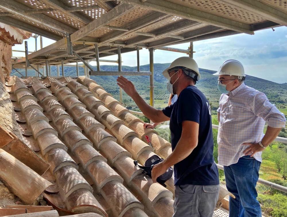 Pallarés, junto al arquitecto Jaume Sirera y la técnica de Conselleria de Cultura Blanca Gil, han visitado el calvario y comprobaron el resultado de la actuación.