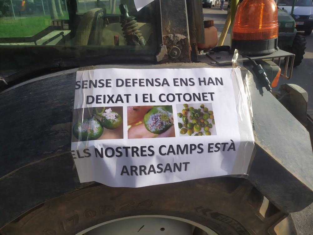 La caravana protesta pel Cotonet de Sud-àfrica, "la pitjor i més devastadora plaga que s'ha conegut en la citricultura de Vila-real des que existeix l'agricultura". Denuncien també que "tenim finques que estan molt prop del nucli urbà que tenen el 100% del cultiu afectat i sense cap valor comercial, per la qual cosa la campanya està perduda".
