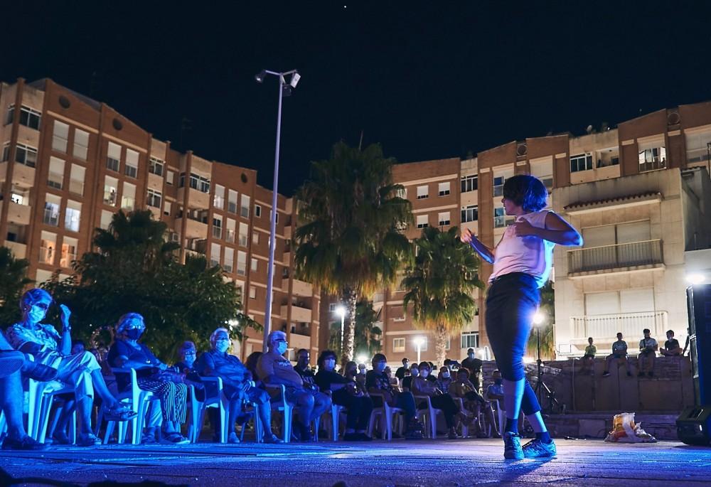 La plaza del antiguo convento de San Francisco acogió la noche del domingo la clausura del II Festival Vinaròs Arts Escèniques con la actuación de Carles Viarnés y Glòria Ros con el espectáculo IAM.