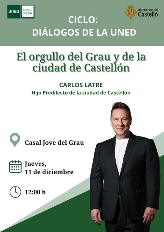 La UNED de Vila-real rendirá homenaje a Carlos Latre, Hijo Predilecto de Castellón, en un acto muy especial que tendrá lugar el jueves 11 de diciembre a las 12:00 h en el Casal Jove del Grau de Castelló. La institución universitaria impulsa este encuentro dentro del ciclo Diálogos de la UNED y ha elegido celebrarlo en el Grau para poner en valor el profundo vínculo emocional que el artista mantiene con este barrio, donde vivió parte de su infancia.