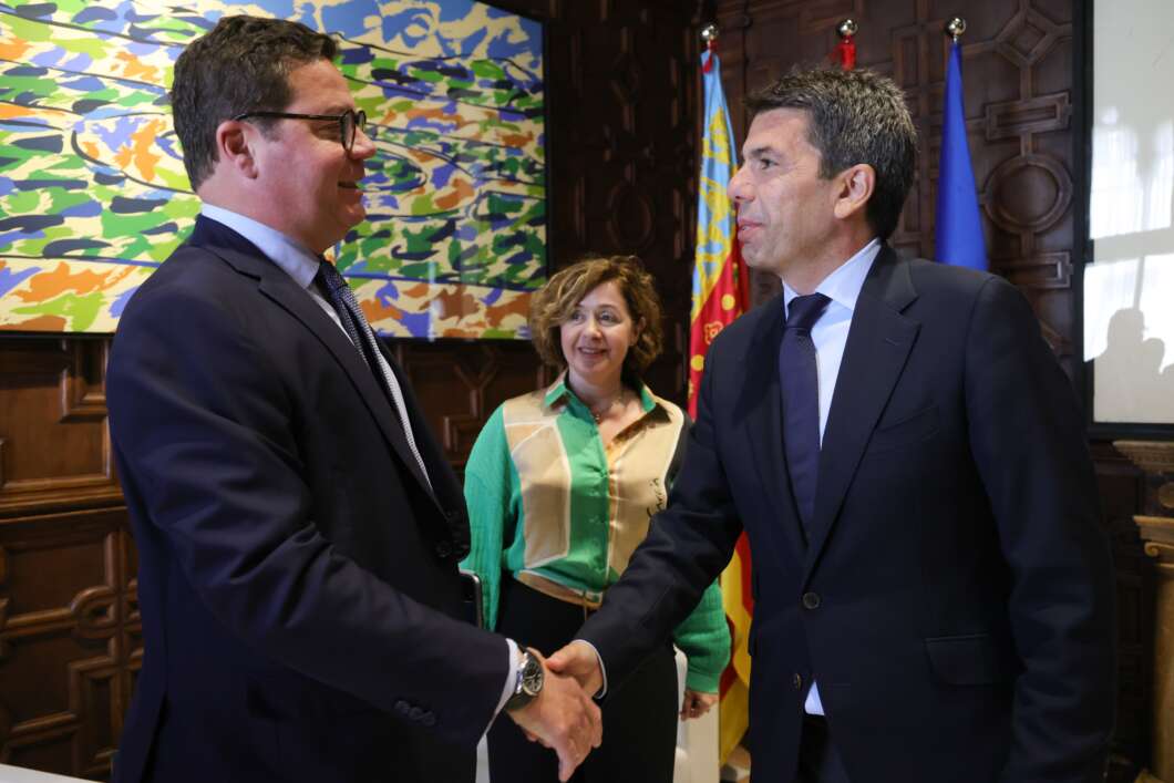 El president de la Generalitat, Carlos Mazón, ha mantenido un encuentro con el presidente de Vithas, Jorge Gallardo; el director general, Dr. Pedro Rico, y la directora territorial, Victoria Verdú.