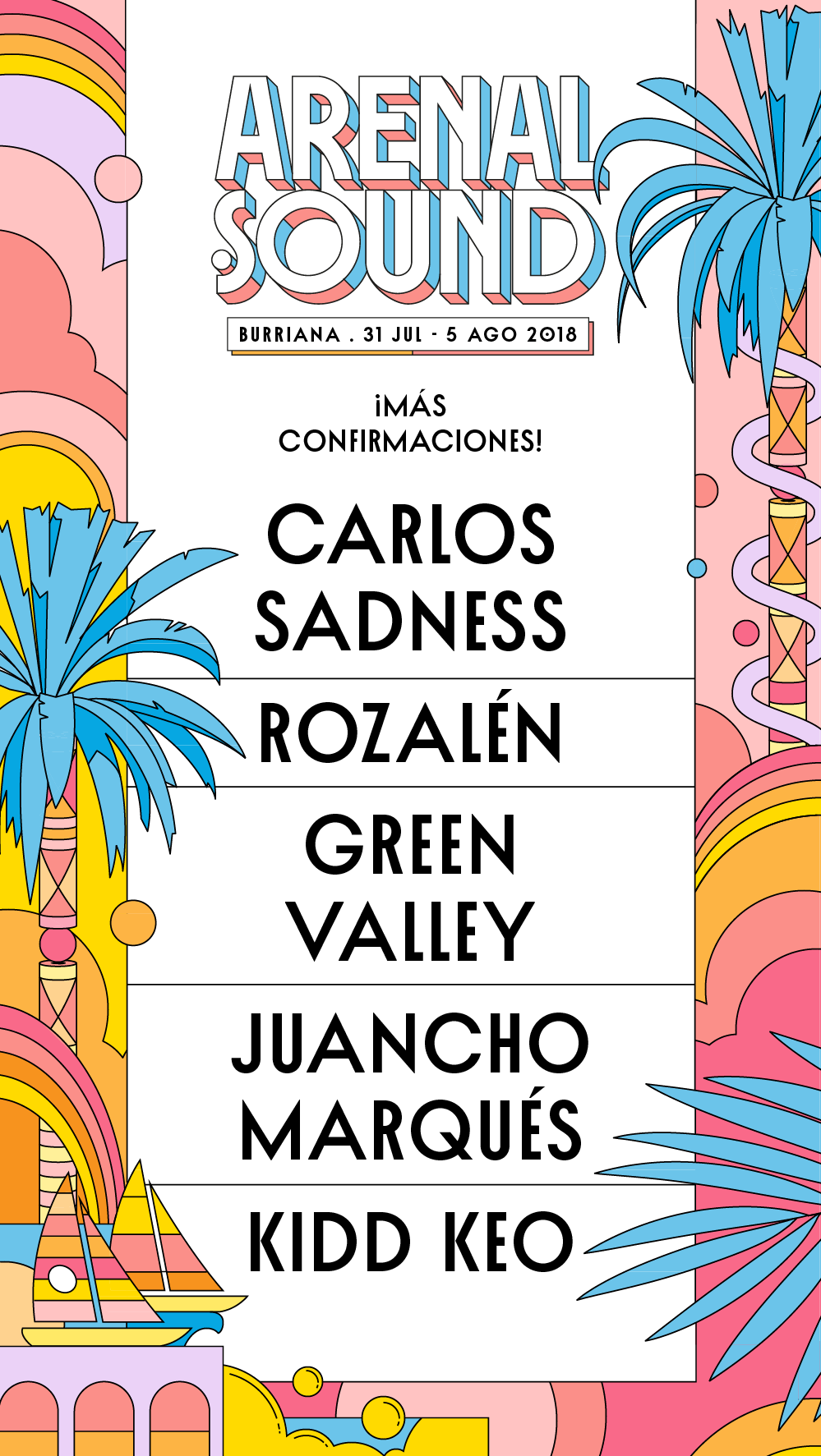 La organización del festival castellonense, Arenal Sound que tendrá lugar del 31 de julio al 5 de agosto en la playa de Borriana, continúa añadiendo nombres al cartel de su novena edición. En esta ocasión se trata de cinco artistas nacionales. Carlos Sadness se encuentra inmerso en la preparación de su nuevo disco, que presentará en Arenal Sound el próximo verano; Rozalén es una de las voces más especiales del panorama nacional y también será una buena ocasión para interpretar los temas de su último trabajo discográfico. Green Valley regresan a Borriana mientras que para Juancho Marqués y Kidd Keo será su primera vez aunque viendo los miles de seguidores que tienen estamos convencidos de que su actuación en el festival será todo un éxito.