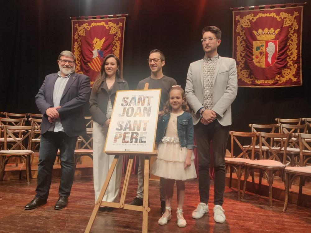 L'acte ha continuat amb el descobriment del cartell anunciador. El Consell de Festes ha escollit el treball del dissenyador Jordi Febrer, una la imatge amb el fons blanc, amb les lletres de les Festes de Sant Joan i Sant Pere fetes amb fotografies representatives de la festivitat.