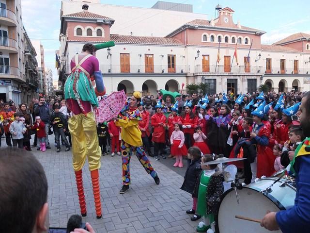 La plaza Mayor y el entorno de la Vila se han llenado esta tarde de diversión, originalidad y teatro en la calle en la celebración del Carnaval Escolar, que este año ha contado con la participación de Xarxa Teatre, que ha logrado interactuar con los más pequeños, al hacerles partícipe de una historia divertida y musical, en la que un ‘aguafiestas’ no ha podido acabar con las ganas de pasarlo bien de los cientos de escolares que se han sumado a la convocatoria.