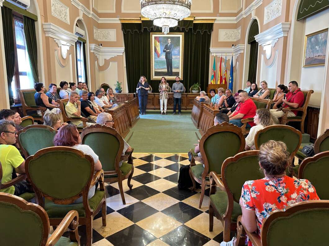 La alcaldesa de Castellón, Begoña Carrasco, ha reunido en el Salón de Plenos del Ayuntamiento a los vecinos del bloque de viviendas en el grupo Perpetuo Socorro cuyos alquileres sociales corren el riesgo de verse incrementados por parte de un fondo de inversión, que es el propietario del edificio.