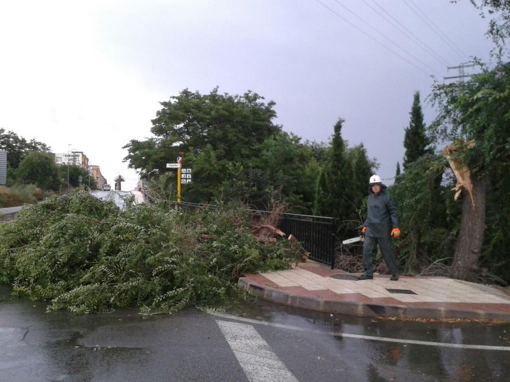 La Policía Local de Segorbe, el personal de la Brigada y una grúa se desplazaron ayer hasta la carretera CV-2505, que une las localidades de Altura y Segorbe, para retirar una rama de árbol que había caído sobre la vía pública a causa de la tormenta.