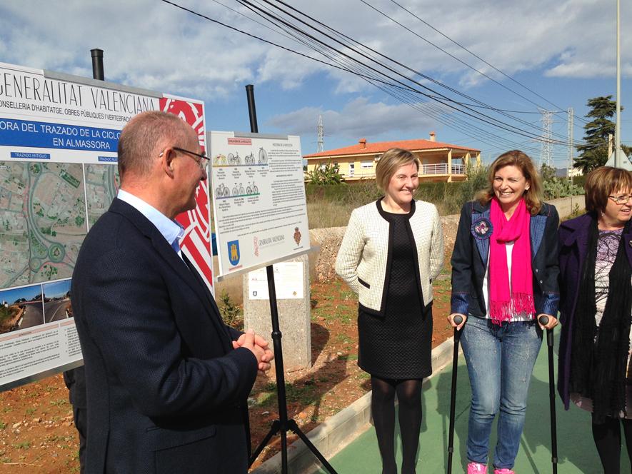 Carribil Bici Castellón Almazora 030217 (95)Esta mañana se han reunido la consellera de Urbanismo y Territorio, Mª José Salvador, la alcaldesa de Castellón, Amparo Marco, y la de Almassora, Susana Nicolau; y lo han hecho al borde de la carretera CV 18 que enlaza las localidades de Castellón y Almassora, y en el punto kilométrico que delimita los dos términos municipales