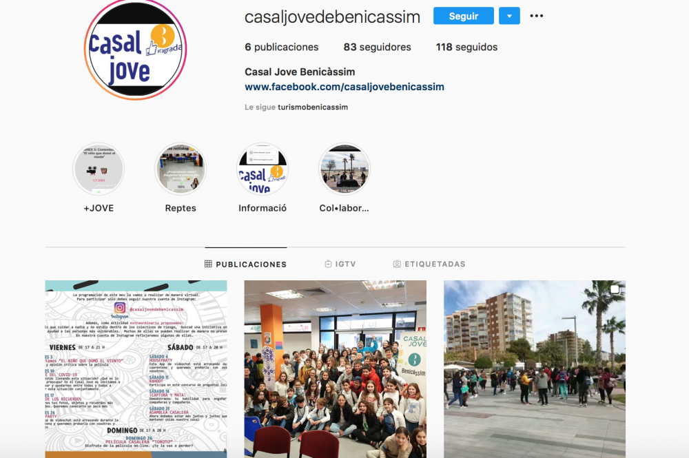 El Casal Jove de Benicàssim continúa con su programación mensual pero la ha trasladado a su perfil de Instagram para que así los jóvenes, todos desde sus casas, puedan participar en las diferentes actividades programadas. Para el mes de abril se han programado actividades los viernes y sábado en horario de tarde, a partir de las 16 horas, y el último domingo de mes.