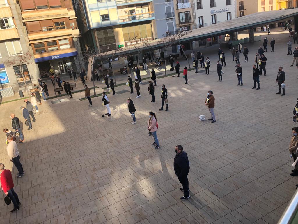 L'acció de protesta pacífica ha durat cinc minuts i després han guardat un minut de silenci per la víctimes de la Covid-19. Els treballadors del sector han lamentat la poca planificació i les decissions desencertades dels responsables polítics i han tirat el gènere malgastat després de set dies tancats com a mostra de la dura situació que travessen