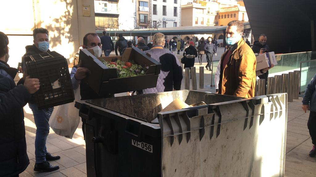 L'acció de protesta pacífica ha durat cinc minuts i després han guardat un minut de silenci per la víctimes de la Covid-19. Els treballadors del sector han lamentat la poca planificació i les decissions desencertades dels responsables polítics i han tirat el gènere malgastat després de set dies tancats com a mostra de la dura situació que travessen