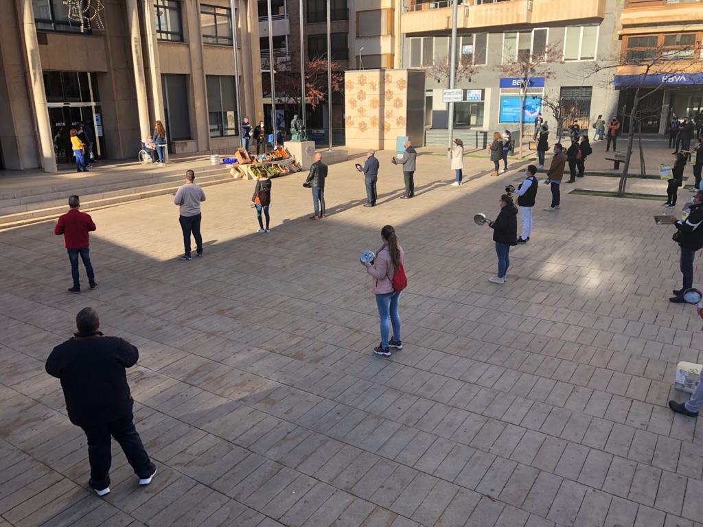 El sector hostaler de Vila-real s'ha tornat a concentrar pacíficament aquest matí en la plaça de l'Ajuntamentper a denunciar la dura situació que travessen després de set dies tancats i barrats. I ho han fet amb una casserolada que ha durat cinc minuts com a protesta.