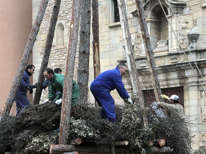 Castellfort celebra hoy la festividad de Sant Antoni. Esta mañana, tras el almuerzo, los vecinos de la localidad han colaborado con los mayorales de la fiesta en el montaje de la hoguera, también conocida como la barraca. Sobre un pino central, llamado "maio", se han apoyado el resto de barras, llamadas 'costelles'. Posteriormente la leña se ha ido colocando de manera estratégica sobre la estructura de madera.