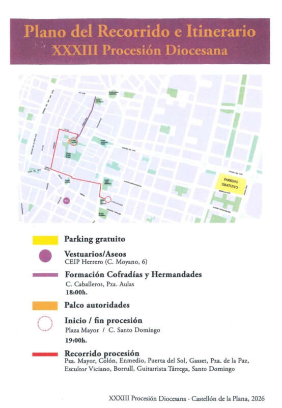 Castelló acogerá este domingo 22 de marzo la XXXIII Procesión Diocesana de Semana Santa. La cita tendrá lugar el domingo previo al Domingo de Ramos, como preámbulo a las celebraciones de la Semana Santa, y reunirá a 57 cofradías y hermandades procedentes de diferentes localidades de la Diócesis de Segorbe-Castellón.