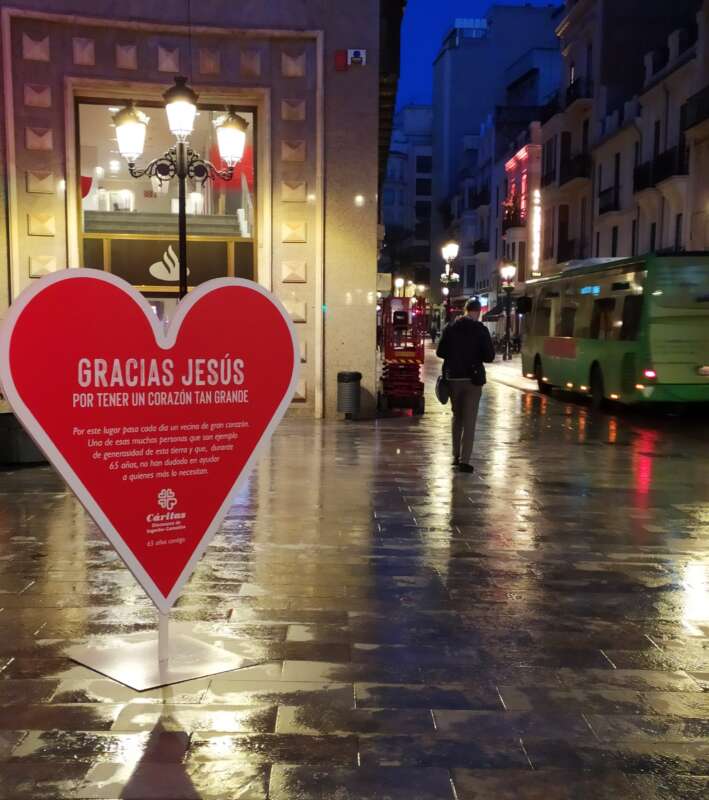 Castelló ha amanecido con 16 corazones de agradecimiento, instalados por Cáritas Diocesana de Segorbe-Castellón en puntos emblemáticos y cercanos a las 16 parroquias de la ciudad, como muestra de reconocimiento por la generosidad de la sociedad en general y de los voluntarios en particular durante los 65 años que esta entidad social lleva desarrollando su tarea de ayuda a las personas más vulnerables.