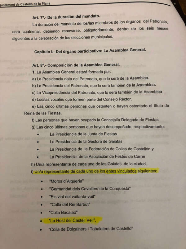 Frente a esa información, terminado el pleno, Omar Braina comentaba a los periodistas que los antiguos estatutos mostraban contradicciones. En los estatutos antiguos sí recogía a la Host del Castell Vell como ente vinculado en la Asamblea de Fiestas; pero en la definición de quienes eran los entes vinculados, no. Había por tanto una contradicción manifiesta.