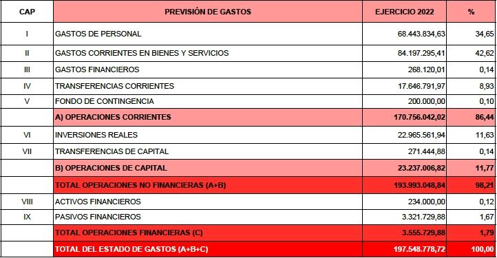 El presupuesto municipal de 2022 presentado por el equipo de gobierno asciende a 197,5 millones de euros (casi 199 millones consolidado con los patronatos autónomos municipales).